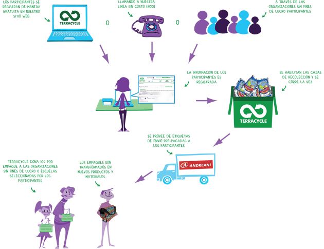 Cualquier persona puede inscribirse para estos programas, llamado las Brigadas, y empezar a enviar los residuos. TerraCycle entonces convierte los residuos recogidos en una amplia variedad de productos y materiales. Con más de 20 millones de personas que recolectan los residuos en más de 20 países TerraCycle ha desviado miles de millones de unidades de los residuos y los utilizaron para crear más de 1,500 productos diferentes disponibles en las principales tiendas que van desde Wal-Mart hasta los Whole Foods Market.